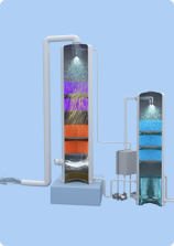 A truly unique counterflow trickling system for a wide variety of air cleaning solutions - the system guarantees a stunning removal result year after year, without media replacement.